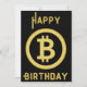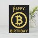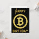 Cette invitation présente les mots "Joyeux Anniversaire" dans une police d'écriture unique avec des lettres dorées clair affichant un B avec un signe dollar au centre dans ce thème et style d'anniversaire de cryptocurrency. Imprimé sur un papier classique de 17,5 pt d'épaisseur avec une finition mate non couchée avec une texture coquille d'œuf fabriqué et imprimé aux États-Unis avec "C'est une fête" imprimé au verso.