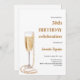 Une invitation moderne, élégante et glamour pour une fête d'anniversaire Pearls and Prosecco (n'importe quel âge) Un arrière - plan blanc avec verre, flûte avec bulles dorées et perles. Le nom est écrit avec un script de style moderne écrit à la main. Personnalisez et ajoutez les détails de votre fête.