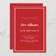 Une invitation moderne, élégante et raffinée. Arrière - plan rouge décoré d'un cadre blanc. Personnalisez et ajoutez un nom et des détails. Texte blanc.