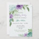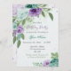 romantique bleu et violet fleurs vert feuille invitation fête d'anniversaire