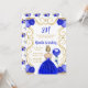 Cette invitation de fête d'anniversaire comprend un cadre doré élégant, une belle princesse aux cheveux blonds et une robe bleue royale, des fleurs et un ballon. C'est parfait pour une fête d'anniversaire.