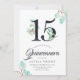 Une invitation à Quinceañera 15e anniversaire amusante et fraîche avec des eucalyptus d'aquarelle frais qui entourent vos informations uniques de Quinceañera fête. Il présente des numéros d'aquarelle couverts de végétation botanique sauvage. Sur le côté opposé de la carte est une couleur verte énergique pour compléter l'avant.