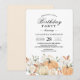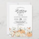 Célébrez avec style avec cette charmante invitation d'anniversaire Rustique d'Automne, mettant en vedette des citrouilles aquarelles peintes à la main, des florales roses et crème douces, et une verdure automnale chaude. Parfait pour organiser des célébrations d'anniversaire automnales cosy pour tous les âges — des fêtes de citrouilles pour les enfants aux rassemblements adultes élégants. Cette invitation personnalisable vous permet de modifier facilement le nom, la date, le lieu et les détails de RSVP pour convenir à votre événement spécial.