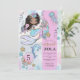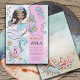 Les petites filles adorent les choses magiques. Cette invitation d'anniversaire de 5 ans de sirène et de dauphin sous la mer magique ravira les invités avec une touche fantaisiste, avec une sirène, un dauphin, une tortue et des coquillages, dans de jolies couleurs rose, bleu vert et violet pâle. Un monde sous-marin de magie et de mystère.
