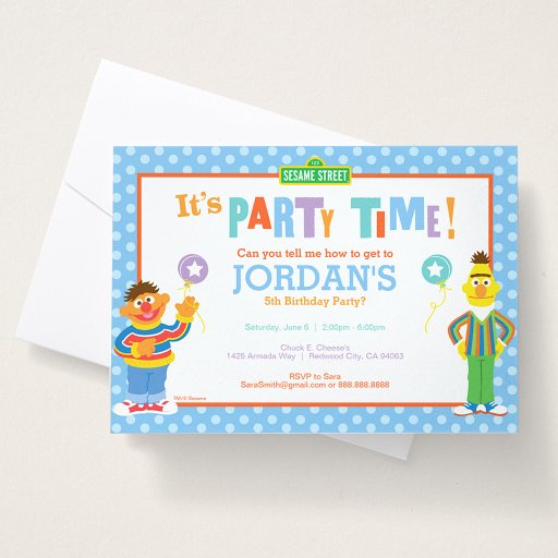 Célébrez la journée spéciale de votre enfant avec la charmante invitation d’anniversaire Bert et Ernie. Dotée de l'emblématique duo de Sesame Street, Bert et Ernie, dans un design coloré et ludique, cette invitation apporte nostalgie et joie à la planification de votre fête. Parfait pour les anniversaires d'enfants, ce design gai ravira les amateurs de tous âges et donnera le ton d'une fête mémorable.