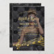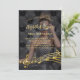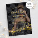 Personnalisez et ajoutez votre photo. Décoré de faux notes de musique dorée. Modèles pour vos informations de fête. Dos : motif de feuillage noir en tant qu'arrière - plan. J'ai utilisé une superposition foncée sur la photo pour qu'il soit plus facile de lire le texte. J'ai ajouté 2 couches, mais une seule est active. Il y a un petit symbole à la fin du calque/ligne de superposition que vous pouvez cliquer pour masquer ou afficher