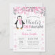 Invitation d'anniversaire de fille de pingouin d'Onederland d'hiver ?ère. Flocon de neige rose et gris. Invitation de fête d'anniversaire de fille. Anniversaire de vacances d'hiver. Arrière - plan blanc. Pour davantage de personnalisation, cliquez sur svp la "personnaliser il" bouton et utilisez notre outil de conception pour modifier ce modèle.