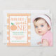 Cette invitation est douce comme pêche ! Les rayures d'aquarelle de caractéristiques dans des tonalités de pêche avec l'expression "Annleigh est douces". Perfectionnez pour fête d'anniversaire pêche-orientée d'été une première. Ajoutez la photo de votre enfant pour la faire vraiment sauter !