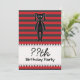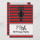 Invitations de fête d'anniversaire avec un lapin lapin kawaii goth sur un arrière - plan rayé noir et rouge.