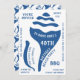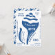 Invitations amusants en bleu et blanc, avec une coquille de conque à l'avant et modelé sur le dos. Il y a beaucoup de texte écrit à la main sur ceux-ci, certains étant courbés dans une police de typographie branchée. Elles sont décorées, pour un 40ème anniversaire de barbecue sur la plage. Si vous le souhaitez, vous pouvez les écrire pour une fête de jardin pool. Vous pouvez supprimer tout libellé qui n'est pas nécessaire, ou simplement le modifier. Ils travaillent pour n'importe quel âge et sexe.