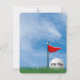 Fermer une balle de golf blanche en herbe verte avec un arrière - plan bleu ciel pour toute invitation de fête d'anniversaire d'âge.