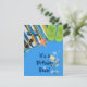 Serviettes de plage avec lunettes de soleil et tongs pour invitation de la fête de la piscine d'anniversaire.