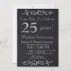 Texture noire classique et chic 25ème anniversaire d'argent invitation qui peut être personnalisée.