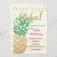 Carte d'invitation d'anniversaire tropicale avec voyants à cordes et ananas en or