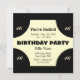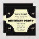 Centre jaune pâle sur invitation de fête d'anniversaire noir. Jaune et noir donnent un aspect moderne à l'ensemble. Ajouter l'âge ou laisser vide - Compléter avec RSVP