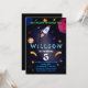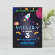 Amusant et coloré, le design d'invitation d'anniversaire sur le thème de l'espace avec des fusées, des planètes, des météores et des détails cosmiques vibrants. Parfait pour les fêtes et les fêtes des enfants. Ce modèle peut être customisé à inclure le nom, l'âge, la date, l'heure et les détails RSVP, ce qui en fait une façon passionnante pour les invités invitations à votre journée spéciale.
