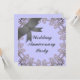 De magnifiques invitations de fête d'anniversaire de mariage pour vous aider à célébrer l'anniversaire de mariage. Personnalisez nos invitations de fête d'anniversaire de mariage en quelques minutes avec toutes les informations sur l'événement pour vos invités. Cette invitation de fête d'anniversaire présente un cadre en filigrane circulaire autour de la légende de la fête d'anniversaire de mariage et une réplique imprimée d'un nœud en haut.
