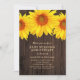 Cartons d'anniversaire de mariage 25 ans Bois rustique Tournesol. Personnalisés selon les détails de votre célébration. Vous pouvez le modifier pour les 10ème, 20ème, 30ème, 40ème, 50ème, 60ème anniversaires, etc. Caractéristiques de beaux tournesols et de la typographie sur un fond en bois rustique. De superbes cartons d'anniversaire de mariage élégants pour des anniversaires rustiques de campagne ou autres. Ce carton d'anniversaire de mariage est conçu par superdazzle.com