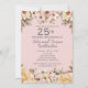 Invitation à une soirée d'anniversaire de mariage de 25 ans élégante et vintage avec des fleurs roses, champagne et ivoire.