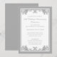 Une invitation traditionnelle de célébration d'anniversaire de mariage de 25 ans avec un design de parchemin à fioritures argentées vintage. Personnalisez avec les détails de votre fête. Illustration de © Mujka Design