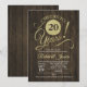 Invitation d'anniversaire de 20 ans rustique avec motif en bois brun foncé et dorure scintillante fausse. À 20 ans de mariage ! Parfait pour une célébration élégante.