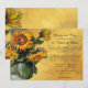 Ce beau et élégant design, appelé Anniversaire de mariage tournesol a un fond jaune ensoleillé avec un arrière-plan de tournesols décolorés. Sur le côté gauche, créant une bordure, il y a une peinture à l'huile de plusieurs tournesols dans un joli vase vert. Cette invitation est parfaite pour le couple qui célèbre son anniversaire !