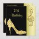 Femmes personnalisées, soixante-dixième cartes d'anniversaire de coutume élégante avec des tape-à-l'oeil et charme. Le bel or de la femme et la double invitation dégrossie noire d'anniversaire avec des fausses pierres fascinantes renversantes d'une image imprimée, parties scintillantes, paillettes, diamants bling des stylets de talons hauts d'étincelle de bijoux façonnent la chaussure, et le triple scintillant d'or fendu sur un noir et un arrière - plan d'or. L'inverse de cet invitation assez féminin d'anniversaire a la même conception avec assez d'espace pour que vous personnalisiez avec vos détails d'événement. Cartes chics, chiques, mignonnes, girly, modernes pour des fêtes d'anniversaire, dans des couleurs/couleurs à la mode et à la mode. Ces super, de fantaisie, élégant, sophistiqué, joli, des cartes de girlie sont décorés/imprimés des deux côtés. NOTEZ SVP : Tous les produits sur Zazzle ont des images imprimées d'appartement.