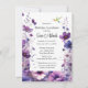 Cette invitation d'anniversaire présente une aquarelle illustrant des fleurs d'hibiscus violets. Le design floral est positionné avec art pour se superposer à la zone de texte, créant ainsi un cadre visuellement attrayant. Ce modèle personnalisable permet d'éditer facilement à la fois le design de la fleur et la police et la couleur du texte. OEuvre d'art générée par l'IA avec direction de design par Susang6.