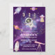 Invitation d'anniversaire de l'astronaute fille. Customisez le modèle avec les détails de votre fête - le nom et l'âge de l'enfant, la date et l'heure de la fête, l'adresse de l'endroit de la fête et les informations rsvp.