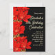 Amaryllis noir et rouge fleurs d'hiver invitation fête d'anniversaire d'hiver. Belle bordure rouge Amaryllis sur papier noir avec modèles texte écru. Personnaliser de libellé pour une célébration d'anniversaire marquant pour elle. Choisissez un papier spécialisé, ou choisissez l'option de téléchargement instantané et partagez en ligne. L'inverse est noir.
