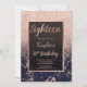 Un moderne, ombre rose de douche de parties scintillantes d'or de faux assez chic et élégant avec invitation de fête d'anniversaire de bloc de couleur de marbre de bleu marine la dix-huitième avec le motif rose d'ombre d'or se fanant sur un marbre de bleu marine avec et un cadre élégant d'or parfait pour un 18ème anniversaire de princesse.