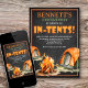 Commencez le feu de camp avec ce design de fête d'anniversaire de camping. L'oeuvre originale et la typographie décontractée et amusante donnent à ce design une ambiance amusante et extérieure. Parfait pour la fête d'anniversaire de camping jardin de vos enfants. Commandez vos invitations imprimées et les fournitures de fête ou téléchargez vos invitations numériques dès maintenant pour une journée qu'ils n'oublieront jamais !