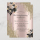 Moderne, chic et glamour, avec des gouttes de parties scintillant dorée, et des roses noirs sur un arrière - plan rose en or.