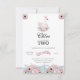 Beau cygne blanc avec couronne et fleurs roses sur arrière - plan blanc