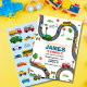 Miel, Béep, Vroom - C’est l’heure de la fête ! Préparez-vous à rouler avec cette invitation d'anniversaire colorée sur le thème du transport! Avec des voitures, des camions et des véhicules de construction, cet invitation amusant est parfait pour les petits qui aiment les choses qui vont. Personnalisez-le avec les détails de votre fête et laissez la célébration zoomer en vitesse! Idéal pour les anniversaires de tout-petits, les fêtes sur le thème de la voiture ou les enfants amateurs de camion.