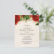 Belle et élégante carte d'invitation anniversaire avec roses rouges sur fond champagne / beige