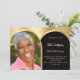 Ajoutez votre propre photo de taille verticale. Un cadre photo en arc. Une couleur arrière - plan noire et fausse or. Personnalisez et ajoutez un nom et des détails du parti.