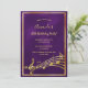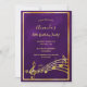 Une carte d'invitation branchée, moderne, 50ème anniversaire ou n'importe quel âge pour elle, femmes. Arrière - plan classique violet foncé, avec cadre faux or et notes de musique, lettres dorées. La couleur violette est inégale. Modèles pour un nom, l'âge et les informations de votre parti. Précédent : Couleur violet faux notes de musique dorée.