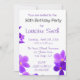 Purple Floral Birthday Invitation est personnalisable devant la carte. Fleurs violettes foncées sur arrière - plan de couleur claire. Cette invitation est un design adapté à toute personne qui aime les fleurs ou apprécie leur beauté, comme un ami, un membre de la famille, ou un autre significatif. Joli ajout à votre fête d'anniversaire.