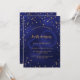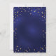 Une invitation glamour à la fête d'anniversaire pour lui et elle. Un arrière - plan bleu marine décoré d'étoiles faux or. La couleur bleue est inégale. Personnalisez et ajoutez un nom et des détails du parti. Texte de couleur dorée. Un grand numéro d'âge comme filigrane. Retour : bleu marine arrière - plan et étoiles d'or.