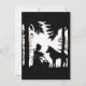 Cette invitation à la fête à carte plate est noire et blanche avec une silhouette de petite hotte rouge à cheval assise dans les bois avec le loup sous les arbres dans un cadre de fantaisie noire. Customisez vos informations sur le devant avec les modèles.