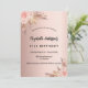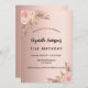 Pour une fête d'anniversaire moderne de style boho 21ème (ou tout âge). Un arrière - plan rose en or. Décoré de fleurs roses d'or et de rose, de roses et d'herbe de pampas. Personnalisez et ajoutez un nom et des détails du parti.