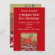 Cette invitation à la fête à carte plate est rouge vif avec une image vintage de petite hotte rouge dans une cape à capuchon rouge cueillant des fleurs rouges et noires d'un champ avec le loup au loin derrière elle. Customisez toutes vos informations aux modèles.