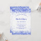 Pour une soirée d'anniversaire élégante de 21e (ou tout âge). Un arrière - plan blanc chic. Décoré avec des faux étincelles bleues royales, confetti. Personnalisez et ajoutez un nom et des détails du parti. Le nom est écrit avec un script de style manuscrit