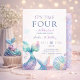 Célébrez la journée spéciale de votre petite avec cette invitation d'anniversaire sirène de rêve. Avec des couleurs pastel douces, des queues de sirène scintillantes, des coquillages et un thème élégant sous la mer, cette invitation est parfaite pour une fête d'anniversaire magique pour filles. Idéale pour un 4ème anniversaire ou toute célébration sur le thème des sirènes, cette invitation personnalisable ajoute une touche fantaisiste et enchantée à votre événement.