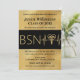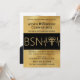 Faire-part d'invitation pour fête de remise de diplôme d'infirmière BSN RN LPN or. Feuille d'or fausse et symbole médical caducée avec ligne de rythme cardiaque. Fonctionne à la fois comme invitation à une fête de remise de diplôme ou comme annonce de remise de diplôme. La photo au verso est facultative. Ajoutez un nom, un diplôme d'infirmière, les détails de l'année de la 'promotion' à cette invitation de fête de remise de diplôme élégante sur le thème noir et or faux. Typographie calligraphique moderne chic avec une ligne de rythme cardiaque et le symbole du caducée des soins de santé - qui peut également être supprimé ou remplacé par votre propre graphique. Parfait pour les cérémonies de remise de l'épingle d'infirmière également ! Recherchez les fournitures et décorations de fête assorties ainsi que le haut de toque de remise de diplôme dans