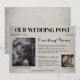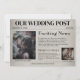 Cette invitation de mariage originale "save the date" présente un thème de vieux journal. Le fond comporte un motif délavé qui ressemble à un journal. Le titre "exciting news" est imprimé au-dessus d'un exemple d'article sur la demande en mariage et la date du mariage. Une image du couple est placée sur la gauche. La partie inférieure comporte une section supplémentaire "Weekend Update" du journal où le couple peut mettre en avant leur animal de compagnie ou quelque chose de spécial pour eux, ainsi que leur propre photo de leur animal ou une autre image.