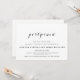 Pour les couples qui souhaitent un design de mariage simple mais élégant. Elke Clarke © Le design présente les noms des mariés dans une police d'écriture élégante avec le mot "reporté". Affiché en noir et blanc mais peut être personnalisé selon les couleurs de votre mariage pour le texte et l'arrière-plan. Ajoutez d'autres éléments graphiques, photo ou monogramme pour personnaliser ce modèle.