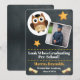 Regardez qui est diplômé ! Modèle de photo de hibou mignon et simple avec tableau noir de diplôme, annonce de cérémonie de remise de diplôme de maternelle, de pré-maternelle, de jardin d'enfants ou d'école élémentaire. Personnalisez facilement avec les informations de remise de diplôme de votre enfant. Modèle d'annonce de remise de diplôme modifiable avec la promotion et la date de remise de diplôme.