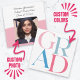 Vous cherchez une annonce de remise de diplôme moderne et personnalisable ? Ce design peut être personnalisé avec la photo du diplômé, son nom, son école et son année de promotion au recto. Les couleurs sont également personnalisables pour s'adapter au style de votre diplômé.